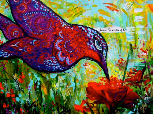En 2024, j’entre dans une nouvelle ère de création en mettant mon art au service de mon coeur et de sa mission de créer des sanctuaires alimentaires pour les colibris et les humains.